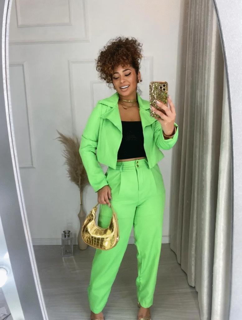 A alfaiataria é perfeita para quem busca um visual elegante sem abrir mão do conforto. Conjuntos de blazer e calça em tons como verde-esmeralda, vinho ou bege são ótimas apostas para o Natal. Esse tipo de look transmite segurança, estilo e modernidade, sendo ideal para quem gosta de se destacar de forma discreta e refinada.