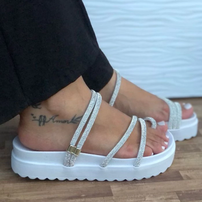 Os acabamentos que dominam agora são as amarrações cruzadas no tornozelo (inspiração grega, usada no Brasil desde os anos 80 mas ressignificada pelas coleções de 2024/2025), as pedrarias discretas aplicadas na tira frontal sem exagero, e as versões em couro trançado que têm textura visível mesmo à distância. Nada disso é tecnicamente novo, mas a combinação com palmilha anatômica — detalhe que as versões mais baratas ainda ignoram — faz desses modelos uma categoria diferente das rasteirinhas descartáveis.