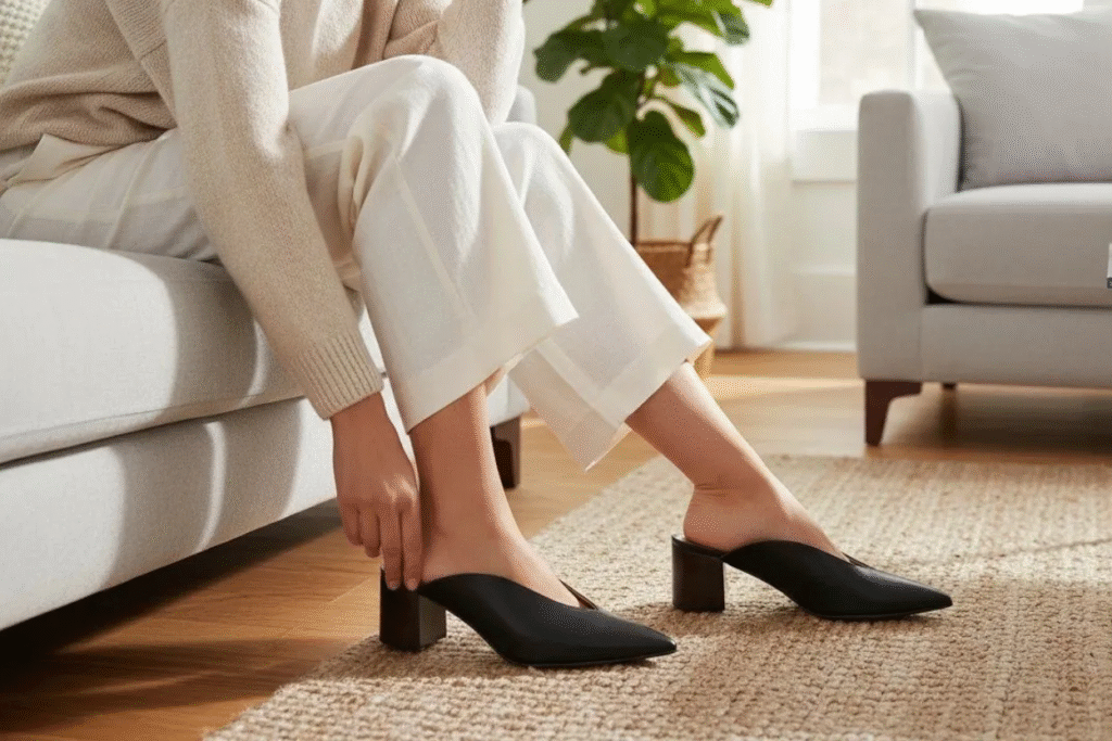 O mule — aquele sapato sem tira no calcanhar — tem uma proposta que parece contraditória: você enfia o pé, sai andando, e ele não cai. Quando bem fabricado, é exatamente isso que acontece. O segredo está na palmilha levemente inclinada e no encaixe do peito do pé, que segura o sapato sem amarração nenhuma.
