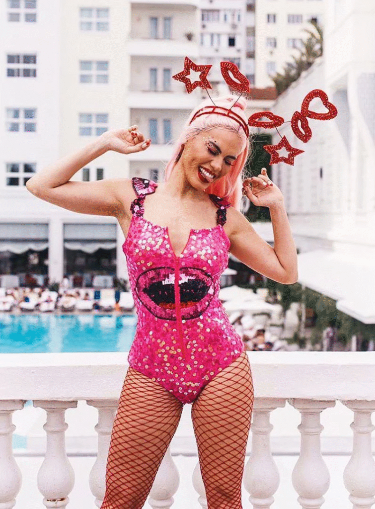 O glitter é um dos maiores símbolos do carnaval e pode, sim, ser o protagonista da fantasia. A ideia da Rainha do Glitter consiste em escolher peças básicas, como body, top ou short, e transformá-las com aplicações brilhantes, pedrarias e muito brilho. Essa fantasia permite total personalização, já que cada pessoa pode criar sua própria versão, escolhendo cores, intensidades e combinações únicas. Além disso, é uma opção prática e versátil, que se adapta facilmente a diferentes estilos e ambientes, garantindo um visual impactante e totalmente conectado com a essência carnavalesca.