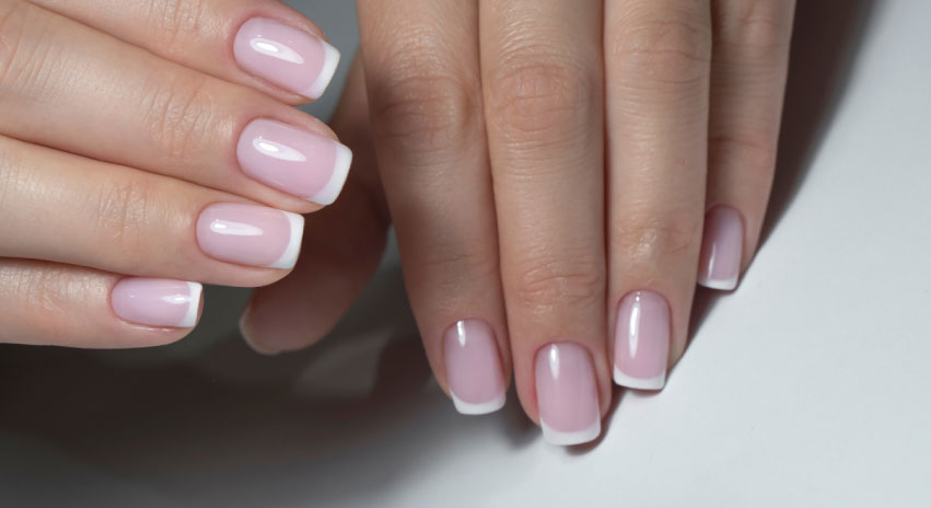 • Versão original: unhas quadradas com pontas brancas bem definidas.