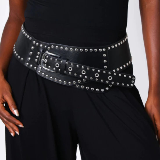 Funciona melhor quando usado por cima de blazer ou sobreposto em camadas. Um cinto fino é para segurar calça. Um cinto largo é para construir silhueta.