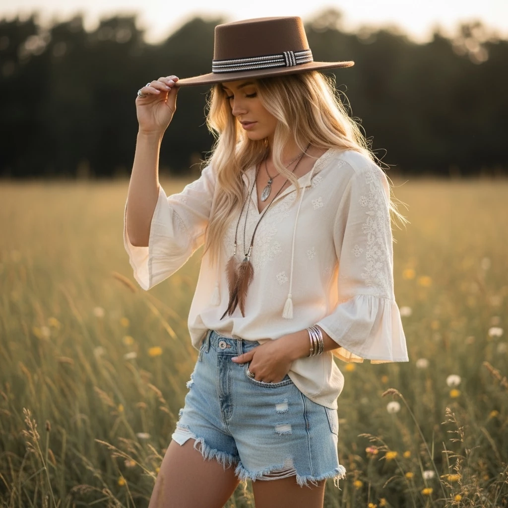 O chapéu tem um poder que poucos acessórios têm: ele muda a silhueta inteira. Um look sem volume na cabeça parece mais simples. O chapéu adiciona dimensão sem que você precise mudar nada do pescoço para baixo.