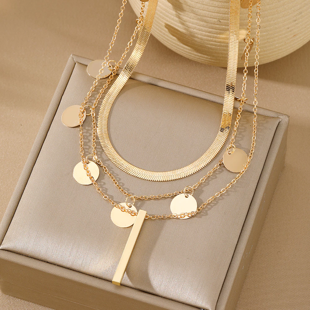 O layering de colares saiu dos editoriais de moda e entrou no dia a dia de uma forma que funciona melhor do que parece quando você vê pela primeira vez. A regra básica: misture comprimentos diferentes — um ras do pescoço, um médio, um longo — todos no mesmo metal.