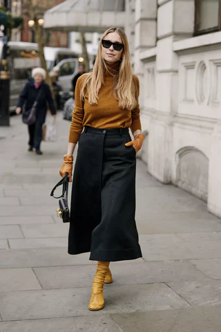 Funciona com looks mais estruturados: blazer, vestido midi, conjunto. Não precisa ir até o cotovelo — luva de pulso com fivela ou botão já resolve. É o acessório para quem quer realmente sair do óbvio sem precisar se explicar.