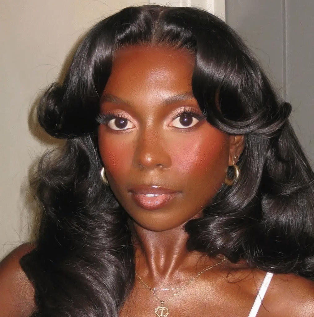 Os tons quentes continuam em evidência e ganham ainda mais destaque quando associados ao blush com brilho acetinado. A aplicação esfumada, quase fundida à pele, cria um efeito natural e sofisticado, reforçando a aparência de viço saudável. Essa proposta funciona muito bem para quem busca uma maquiagem luminosa, com acabamento uniforme e toque refinado, perfeita para longos dias de Carnaval.