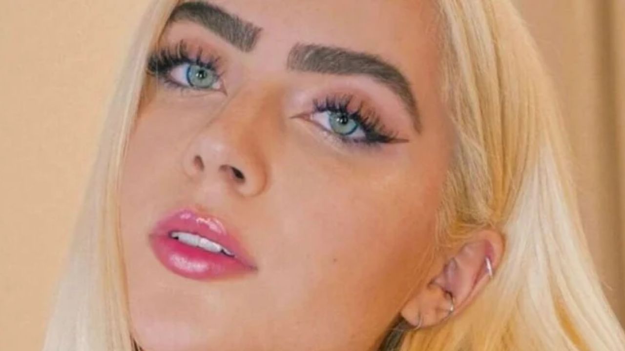 Sobrancelhas pesadas e mal esfumadas deixam a expressão carregada.