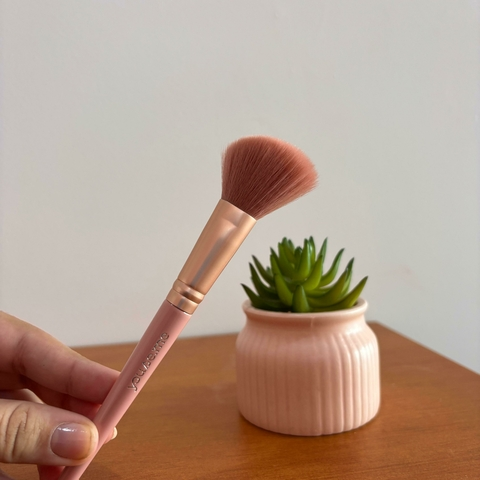 • Leque: formato aberto e fino, ideal para aplicar iluminador de forma sutil nas têmporas e no nariz.